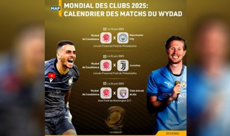 On June 22 at the same stadium, Wydad will face Juventus (Italy), before finishing the first round of Group G on June 26 at Audi Field in Washington D.C. against Soufiane Rahimi’s Emirati club Al Aïn, FIFA said in a statement.