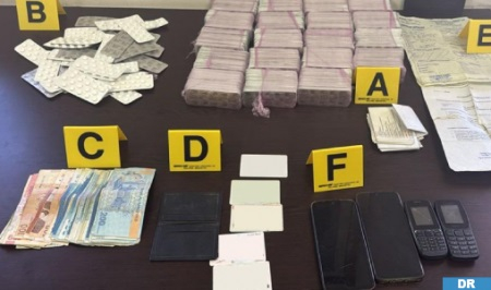 The two suspects were caught red-handed, possessing and trafficking psychotropic tablets in a light vehicle, and the ensuing searches led to the seizure of 12,000 “Rivotril” psychotropic tablets and a sum of money suspected of being the proceeds of these criminal activities.